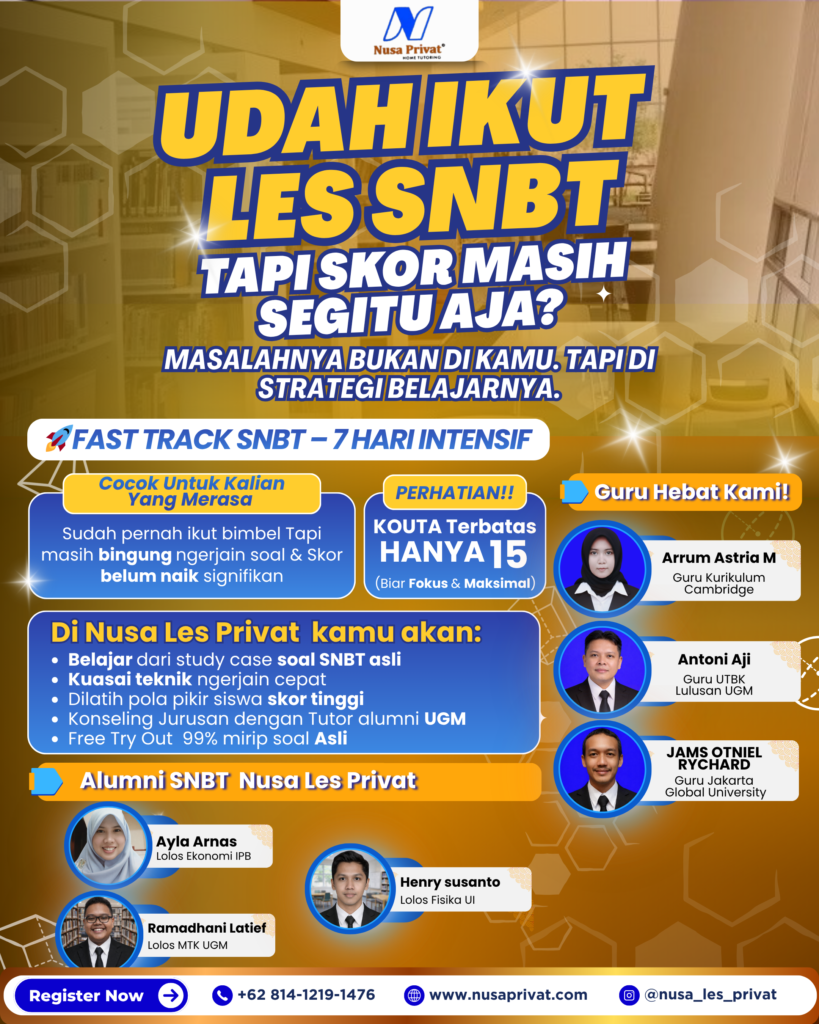 Kami dari NusaPrivat menawarkan layanan les privat di Bogor untuk semua mata pelajaran, dari Matematika, IPA, hingga Bahasa Inggris. Dengan pengajaran yang fleksibel dan disesuaikan dengan kebutuhan anak, layanan kami siap membantu anak Anda mengatasi kesulitan belajar, meningkatkan prestasi, dan lebih percaya diri dalam menghadapi ujian.